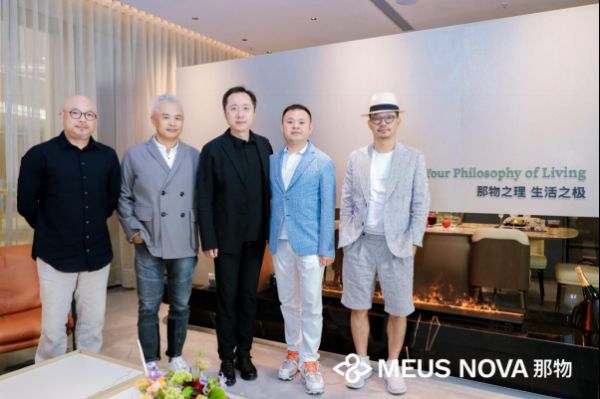 MEUS NOVA那物品牌发布会的第一场VIP PREVIEW嘉宾探店环节中,MEUS NOVA那物的品牌总监宋婧潇Cordelia女士邀请了四位中国建筑室内设计界的重量级人物:赵虎先生(聚向传媒董事长及美国《室内设计》中文版出版人)、刘波先生(刘波室内设计有限公司创始人、深圳市空间设计协会会长)、李益中先生(中国当代知名室内设计师、李益中空间设计创办人)、林文格先生(文格空间设计品牌创始人、SIID深圳市室内建筑设计行业协会副会长),一同作客于MEUS NOVA那物位于深圳宝能第一空间的体验店,在沉浸式的居家空间氛围内,从科技、情感、设计和生活方式等几个方面,探讨了数字化大环境下的空间美学,及空间、环境及人之间的相互关系,继而共同探索了“高级全屋定制”的要素及意义。