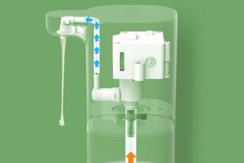 功能方面,这款洗手液机有几个亮点特色,其中包括独特的活塞结构设计,加上进出口单向阀结构,可以实现不同粘稠度液体的抽吸。除了放洗手液之外,像洗发水、沐浴露、洗面奶、洗洁精等都可以使用。实际体验来看,洗手液机出液很顺畅,没有堵塞感,也没有拖沓、滴溅的情况出现。