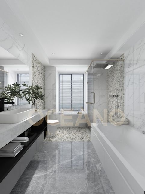 毫不逊色于天然石材的质感与触感,那纵跃的彩石拼凑出浴室空间的一片斑斓,将跌宕起伏的细腻情感融入平整的石面之中。丰富的彩石凝练在方寸之间,绚丽地交织在一起,看上去传统之中又不失时尚风味,非常适合用来提升空间的艺术感。