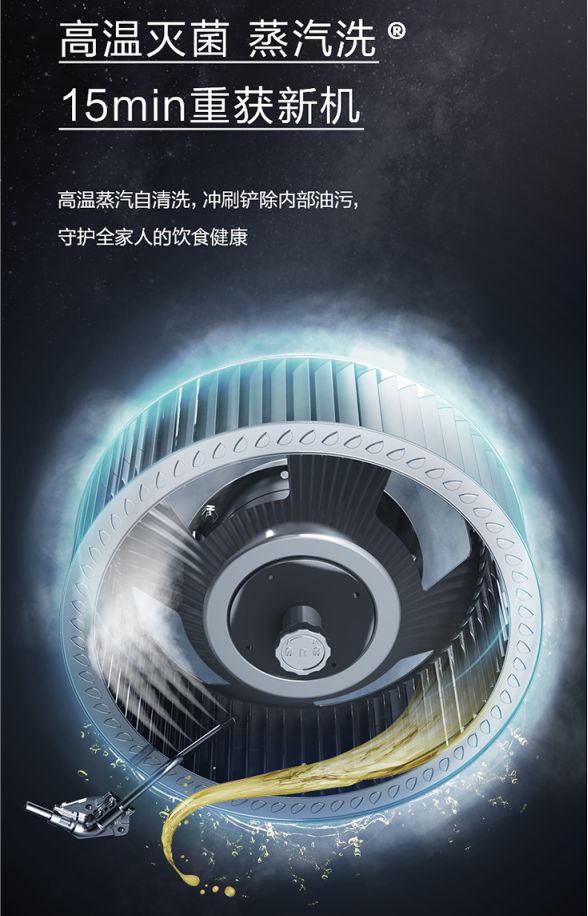 此外,传统集成灶的烟机大多为一体化设计,内部构造大多复杂,普遍存在清洗困难的问题,如果油污缺乏清洁堆积过多,不仅会降低吸力,缩短使用寿命,更会滋生细菌,大大侵害家人的健康,而美的的这款Y36独立蒸烤集成灶便深谙这一用户痛点,创新推出高温灭菌蒸汽洗技术,利用高温高压,将水加热成蒸汽状态喷出,蒸汽360度包裹,快速溶解叶轮、油网、蜗壳上的油污,实现全覆盖无死角清洗。这种蒸汽洗的形式,可以轻松铲除顽固油垢,使顽垢无处躲藏,经蒸汽洗后,洁净率可达98.4%,灭菌率更是高达99.99%,只需15分钟,便可带来洁净如新机般的体验。不仅让清洗更高效、极净、自动化,更完美解决了传统集成灶在清洗时,还需人工拆洗的弊端,最大限度地避免了人工清洗对集成灶内部结构的损害,解放用户双手,带给用户更便捷且安全的健康呵护。