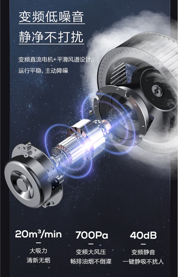除了油垢和细菌,噪音也是危害厨房安全的一大元凶,人如果长期在噪音环境下作业,容易造成心烦、头晕、耳鸣目眩等问题,极大的影响人体健康。传统集成灶因难清洗,容易造成油垢堆积,使叶轮变形失衡,影响与电机轴的配合,且电机设备老旧,降噪效果差,再加上抽风烟道多弯曲,吸力小,排烟不畅等问题,极易制造噪音,侵害用户健康。美的Y36集成灶,采用变频直流电机+平滑风道设计,可以增大吸力、变频大风压还可畅排油烟不倒灌,使厨房清新无烟,变频静音技术更是可以一键静吸,降低噪音的产生,极净不扰民,令用户舒心享受下厨时光,呵护用户身心健康