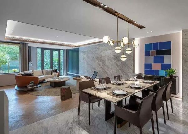 样板间经常会有好多玻璃、亮片、镜子等反光元素,这就是为了让空间的视觉无限延伸。