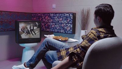 一打开视频,第一幕就十分“抓”人,一个男子用炸鸡遥控器打开一台泛着雪花的旧电视,电视里的两位播报员准备开始播报。