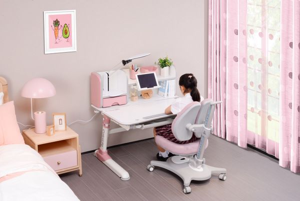 七彩人生梦想之星多功能学习桌可以进行53-1875px自由调节,实时匹配孩子成长的需求,帮助预防孩子近视。