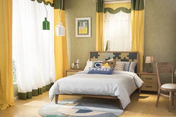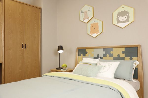 想给孩子换个心情,空间以活力黄为主色调,男孩和女孩都适用,拼图恰到好处的点缀,一张舒适儿童床,保证孩子的充足睡眠,也能满足孩子日常生活中收纳、睡眠、休闲等功能需求。