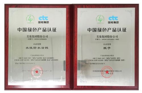 会上,美巢集团股份公司代表周斌博士上台接受了中国绿色产品认证证书授牌。美巢集团“防水涂料”“室内一般型腻子”“室内耐水腻子”产品获得“中国绿色产品认证证书”,该证书是认证机构代表国家颁发给企业的荣誉证书。