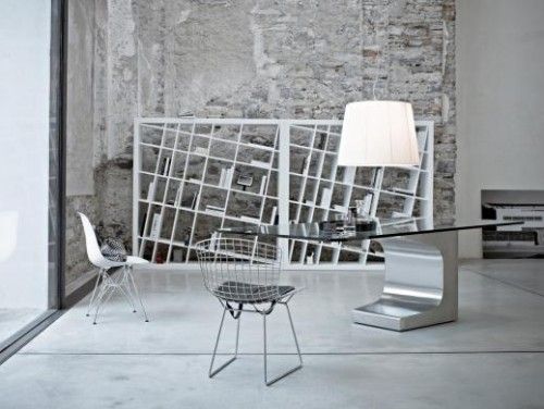 玻璃桌面,锻面拉丝不锈钢饰面C形脚,直线与曲线的交锋是设计理念的直接表达。独特的线条感仿佛Niemeyer先生的另一个建筑作品,充满了雕塑感。
