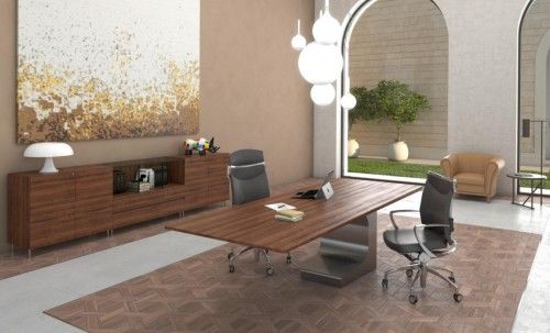 主管桌桌面也可选择实木胡桃木,主管桌下选配旋转抽屉;增加走线功能与收纳空间。
