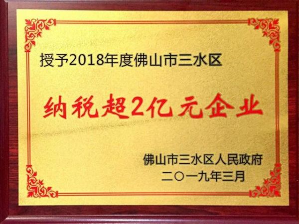 ▲欧神诺获2018年度佛山市三水区纳税超2亿元企业