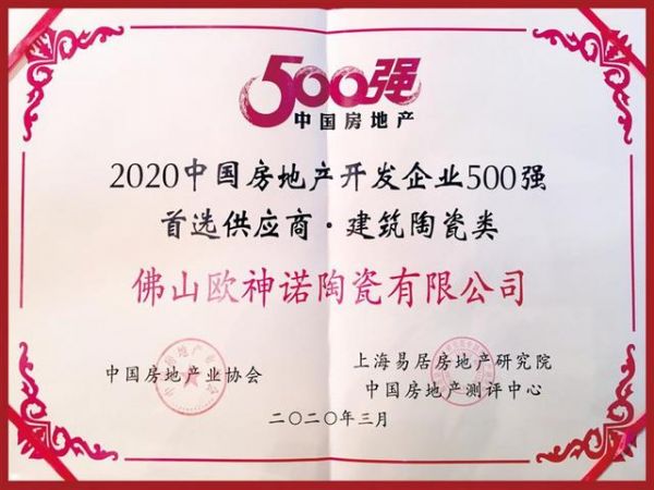 ▲欧神诺获2020中国房地产开发企业500强首选供应商品牌