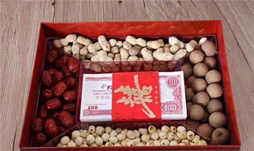 男方还要准备的东西就是早生贵子了,这个也是大家常见的一种所谓的早生贵子,就是红枣,花生和桂圆以及莲子这些食物。
