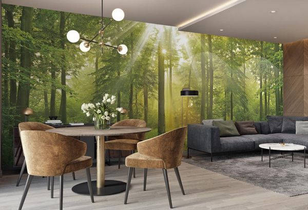 “采菊东篱下,悠然见南山”,从古至今,人们回归自然、返璞归真的念想从未止步。壁画《光影绿林》,以现代轻奢为设计理念,采用绿色丛林为主题,营造出使人倍感清新的自然。独具一格用逆光进行构图,光束从树林中洒过,绿茵下尽显剪影般的张力。光与影的完美组合,赋予场景更强的质感和层次。静谧午后,探索丛林秘境的画面语境,为身心呈现开放式的自由空间。