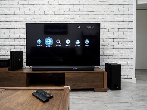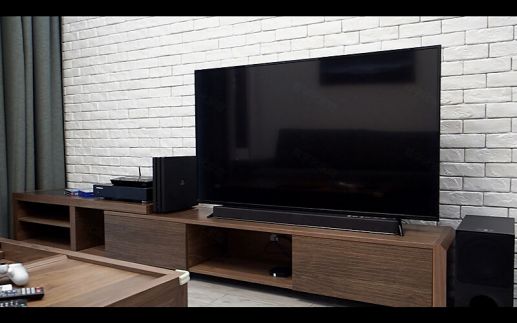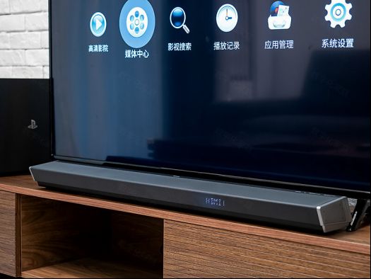 从两台回音壁和55英寸电视机的搭配来看,国际大牌回音壁小巧,不占空间,而飞利浦PB603在视觉效果上更能融为一体。飞利浦PB603主音箱是设计成向前倾斜的样式,看上去立体感更强、更有冲击力和气势,时尚感更强一些,更炫酷一点。