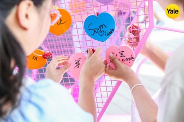 活动过程中,情侣们可以通过完成问卷的方式获得一块告白牌,在告白牌写下另一半的名字,表达对爱情最质朴的期许,书写来自于爱情的纯粹与美好。随后,情侣们需要用同心锁将自己的告白牌锁在爱心装置上,寓意为锁住相爱的两颗心,赋予这段浪漫的感情一份安全感。同时,这些冒着粉红色泡泡的甜蜜瞬间都由耶鲁为情侣们准备的专业摄影师抓拍了下来,让浪漫与甜蜜留存。
