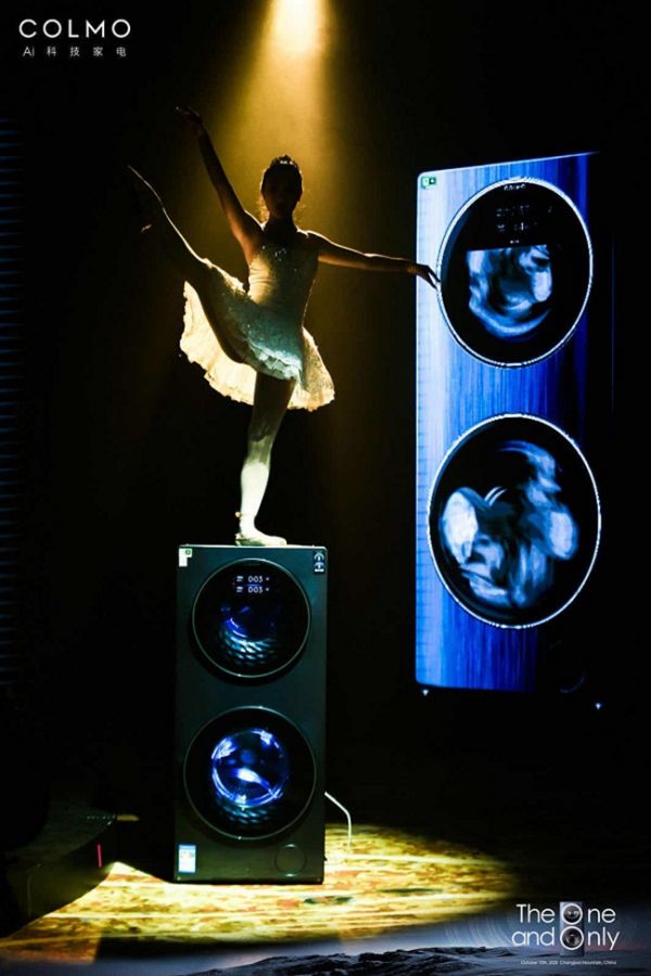 在运行中的COLMO太空舱洗衣机上,芭蕾舞者翩然起舞,仿佛引力消失,展现了极致的稳定性和艺术气息。COLMO太空舱洗衣机还现场挑战宇航服洗护, COLMO星球001号探索者陈数亲自见证了清洗完成的宇航服从洗衣机中拿出,COLMO太空舱洗衣机5KG上筒+10KG下筒大容量搭配与精准的AI洗护惊艳全场。