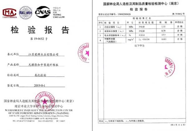 8月20日,第一块12毫米无醛添加中密度纤维板在菏泽佰世达生产现场下线,解决了胶黏剂的胶合问题;