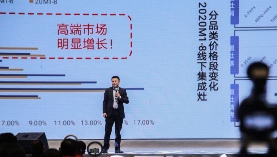 会议由奥维云网厨电事业部总经理刘大任主持,在开场介绍中,刘总首先向近千位集成灶行业的经销商介绍了本次发布会的背景和白皮书发布的意义:在大环境承压的背景下,集成灶俨然成为家电尤其是厨电当中的明星产品,在消费升级和厨房集成化的趋势下,集成灶凭借抽油烟效果好,高效集成油烟机、燃气灶、消毒柜、蒸箱、烤箱、洗碗机等功能,成为家电行业增长最为迅猛的新兴品类之一。而随着集成灶产品被越来越多的消费者所认可,新产品也在功能上不断升级和迭代,其中有一个最为明显的趋势就是蒸烤功能的兴起和发展。随着人们生活品质的提高,大家对饮食的品质要求也在不断升级,而蒸烤一体集成灶以多功能、智能化、体验佳等多种优势迅速占领厨电市场高地,深受消费者喜爱,成为2020年集成灶市场的“宠儿”。
