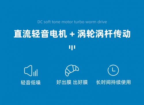它的静音不光得益于电机,还有涡杆传动系统的功劳。普通厨师机一般采用皮带传动,或者齿轮传动,稳定性弱、容易磨损、阻力大而且效率低。对比之下,涡轮涡杆传动的优势就很明显了,运行起来稳固不晃,不松弛抗老化,转动摩擦阻力也小。齿轮结构层层完善,从而控制了运行时的噪音。经过专业测试,一档揉面,低至55分贝,是正常交谈的声音。8档高速打发,低至70分贝,也是可以接受的程度。