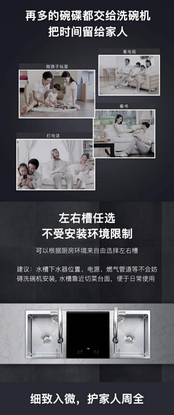 洁浦水槽洗碗机,兼备水槽、洗碗碟以及果蔬净化等多重功能,开创性地将洗碗机、水槽、果蔬清洗机等八大功能与一身。