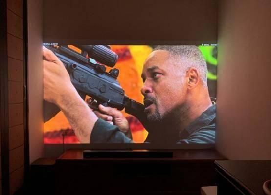 以目前市场上最火热的便携式投影仪机型——当贝小投影C2为例,它带有超大电池,这款有9600mAh的大电池,看三个小时没问题,一般一部电影也就2个小时,刚刚好。因为是便携投影仪,免不了到处移动,或者磕磕碰碰,本来以为对焦是个麻烦事,没想到当贝小投影C2的自动对焦非常灵敏,随时移动随时对焦,TOF激光对焦果然名不虚传。