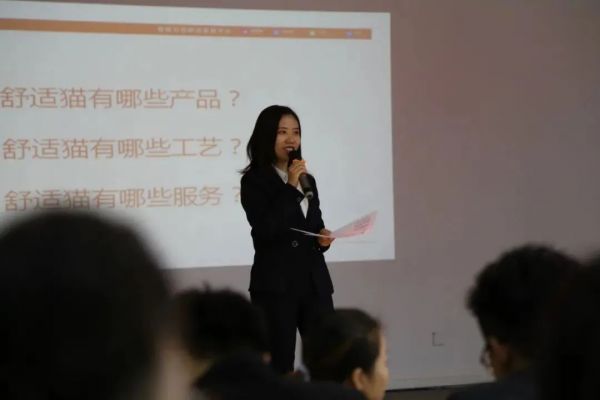 “客户为什么选择舒适猫?舒适猫的优势是什么?”产品技术部黄老师围绕这两个核心议题,展开针对舒适猫门店销售的专项培训。通过分组讨论、随堂小测等灵活多样的形式,从舒适猫的产品、工艺、服务三大板块,帮助销售人员掌握舒适猫核心优势,提升销售能力。