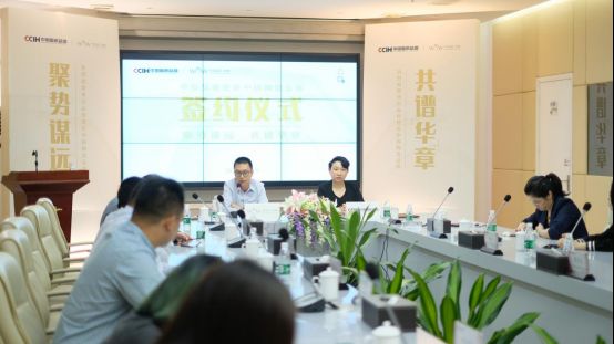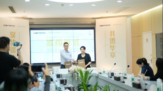 华岩品致岩板和中国陶瓷总部双方代表签约