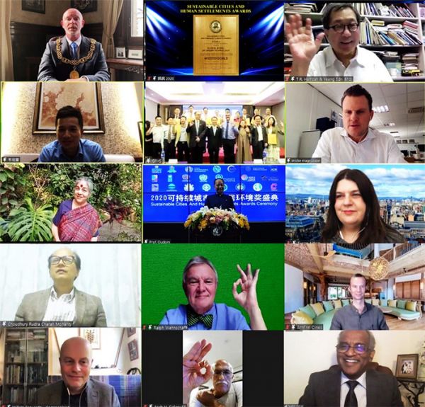 2020可持续城市与人居环境奖颁奖盛典(SCAHSA·飒飒奖)于10月16日晚揭幕,再次成为本届年会的一大亮点。共有来自全球的19个单位和个人荣膺桂冠,包括下届联合国气候变化大会的承办城市——英国格拉斯哥市、浙江常山县、已实现碳中和的马尔代夫索尼娃芙西度假村、著名印度作家、环境哲学家范达娜・席娃博士、 马来西亚知名建筑师、生态学家杨经文博士、 世界一带一路组织、荷兰DyeCoo零水耗、零化学物染色技术、美国创新回收企业TerraCycle、碧桂园森林城市、新加坡盛港综合医院等(完整获奖名单可在全球人居环境论坛官方网站www.gfhsforum.org查询)。在人类命运攸关的时刻,绿色明星们的示范带动作用更加重要。