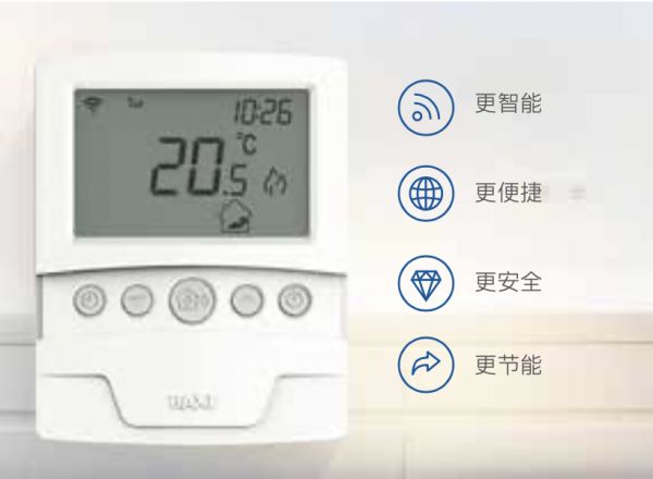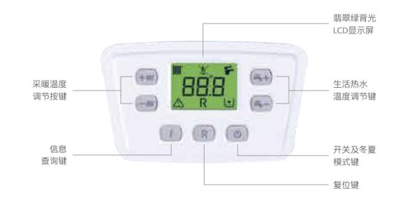 BAXI八喜 ECO PRO的设计非常人性化,翡翠绿背光LCD显示屏,昏暗环境里也能看得清晰;温度及状态的指示直观易懂,家中长辈及小孩都可轻松掌握!