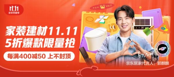11.11期间,京东居家提供超十万件居家好物低至5折,超万件智能吸顶灯、卫浴产品、五金工具、开关插座、智能门锁、锅具、保温杯、冬被、收纳箱、保鲜盒、打火机、沙发、床/床垫、电脑椅、晾衣机低至5折!再加上不限量卫浴套餐4折起,轻奢吊灯低至299元,全屋吸顶灯套餐低至389元,2000台松下化妆镜灯低至9.9元……以及全场满400减50上不封顶的优惠,助你轻松装出梦想新居!与此同时,京东居家重磅上线48小时焕新家服务,携手欧派、百安居、科勒、立邦等卫浴、油漆涂料、橱柜、装修等多家知名企业,让你感受前所未有的简单、快乐家装体验!