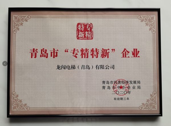 近期,青岛市民营经济发展局发布公告:经企业申报、资格初审、区(市)推荐、专家评审、审核筛选等程序,公布了2020年度青岛市“专精特新”企业名单。龙闯电梯(青岛)有限公司被认定为青岛市“专精特新”企业。