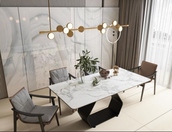 应用场景也非常多,比如室内建筑装修、橱柜、面板、中岛台、成品家具、电视柜、茶几、餐桌、茶盘等家具饰面或台面板材应用,拓宽了传统陶瓷的应用面。蒙娜丽莎为消费者量身打造岩板空间应用方案,提供专业的岩板技术支持。
