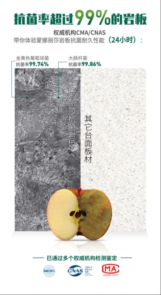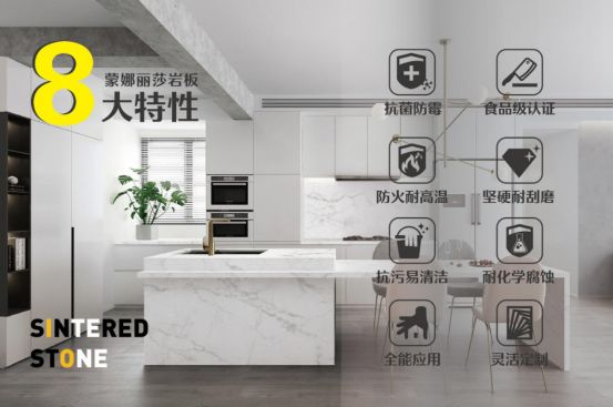 精选的高岭土,与绿色生产车间、1280℃高温烧成、3.6万吨的“大国重器”压机以及其他原材料默契配合,凝聚成蒙娜丽莎岩板防霉抑菌、环保零甲醛、食品级认证、防火耐高温、耐磨耐腐蚀、防污易清洁、时尚高颜值的特性。更多岩板资讯可以搜索微信小程序:陶瓷岩板。