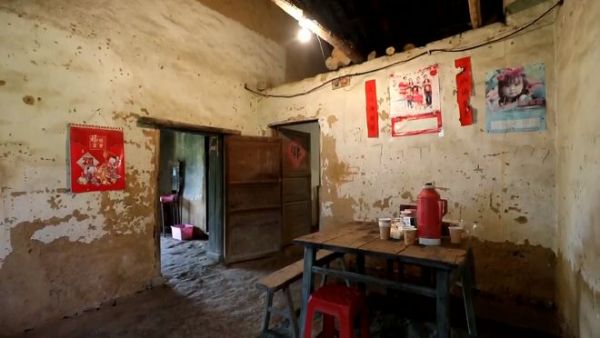 这栋孤独地伫立在山间的老屋,整栋房屋只有一层。墙体全都是土夯的,上面没有什么装饰,有的只是孩子的奖状,随着雨水的冲刷也逐渐生出许多裂缝;窗只封了一层塑料薄膜;每一间屋子只有一个灯泡;上个厕所还要走十几米的路……这样的状态,显然已不再宜居,但小陈的父母却一直固执地生活在这里。