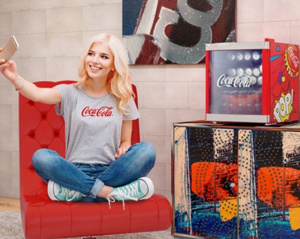 这款冰箱一眼望去便抓住了我的眼球——经典的红色,以及表面波普元素图案更加吸引年轻人。采用经典瓶盖图案,且印有经典的“Coca-Cola”标志,再加上“POP”字样,更彰显出此款冰箱的潮流、酷炫感。而冰箱的把手是可口可乐易拉罐经典的亮银色,充满了趣味性。作为一枚走在时尚前端且精致的潮人,它当然是我的不二之选。