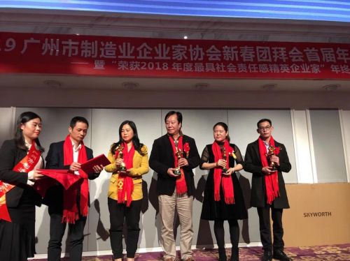 1月10日,2019广州市制造业企业家协会新春团拜会首界年会召开,广州市艺高洗碗机董事长谢炜刚先生,获得了“2019年度最具社会责任感精英企业家”称号。这是中央发文聚焦“企业家精神”以来,再一次弘扬优秀企业家精神的真实写照,而艺高洗碗机的正能量事迹也再次被广泛传播。