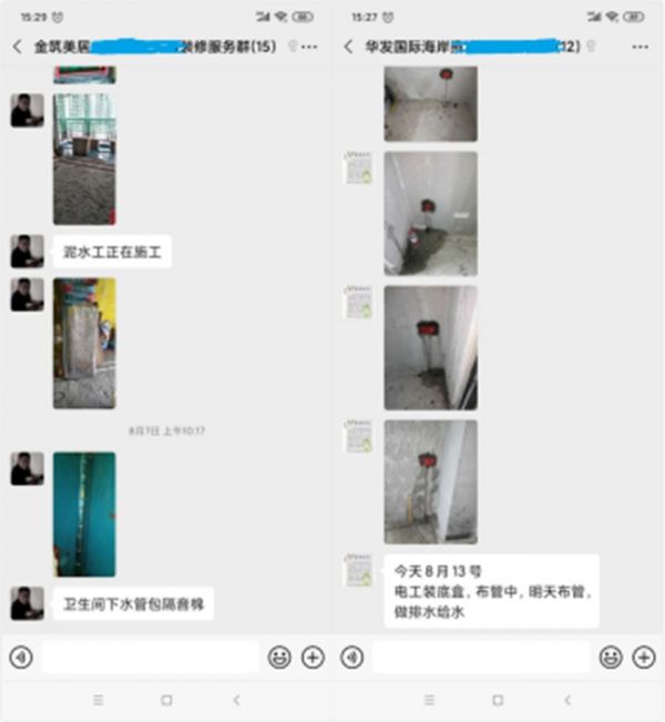 整个施工中,每天早9点,业主会收到的当天工作计划;而对应的工作报告和实景照片,在当天傍晚,将准时发送到业主手机,风雨无阻。从工人到总经理,都在业主的装修项目群里,及时回应每一个疑问和要求。一个手机,就能让装修全程透明化。
