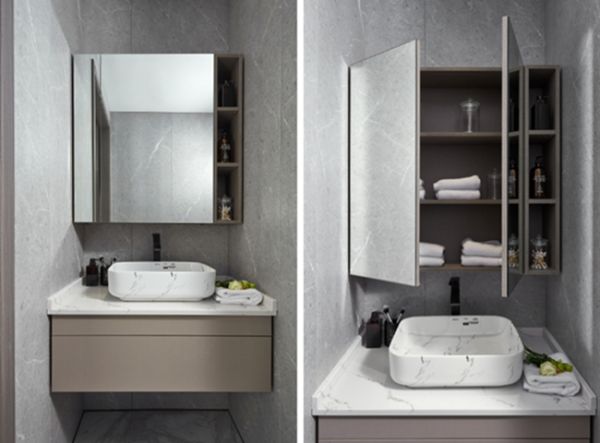 收纳和防潮,向来是反映浴室柜合格与否的重要标准,柏厨的浴室柜大都选择悬挂设计。这样的设计除了在优化使用空间时有着显性的优势外,同时不存在卫生死角,主人家在平时清理的时候相对要简单的多。另外悬挂浴室柜的防潮性能都会更好,再好的柜子都经不起长期水浸,将浴室柜体悬挂起来,与地面割离,可以将水分和湿气扩散,尽量避免湿气日积月累对柜体的侵蚀,从而提升柜体使用年限。