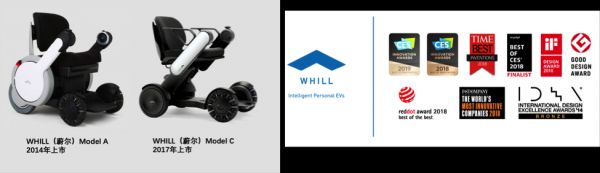 (上右图)为WHILL(蔚尔)的产品在世界殿堂级设计奖、电子技术奖斩获的众多奖项