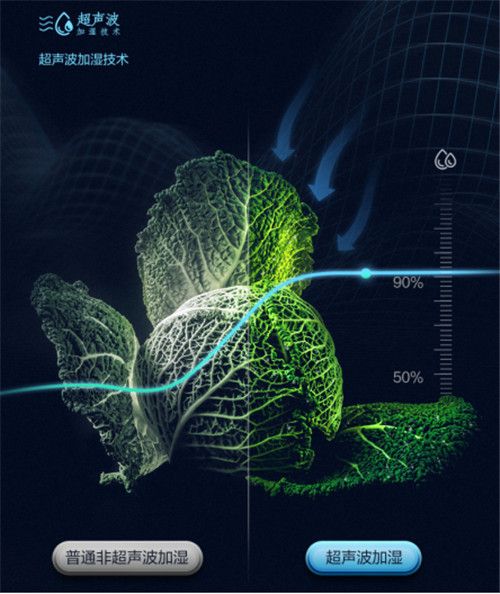 值得关注的是,该款冰箱搭载超声波加湿技术,通过主动监测库内食材状态,实现主动加湿保鲜。果蔬模式下间室湿度90%以上,同时搭载蓝光LED,模拟光合作用下的波长,使果蔬长久保持鲜活状态,防止养分流失。另外,在设置红酒珍藏模式,间室转为12°C恒温,约70%的湿度,可以更好的存放葡萄酒。