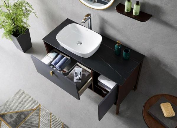 Impress印象系列浴室柜,作为最新发布的岩板系列产品之一,无论功能和设计都展示出当下的新国潮之美。新型科技岩板,自然天成的肌理感,沉稳中流露现代轻奢质感。配莹润亮白方陶瓷盆,简雅、闲逸而又散发文化韵味。