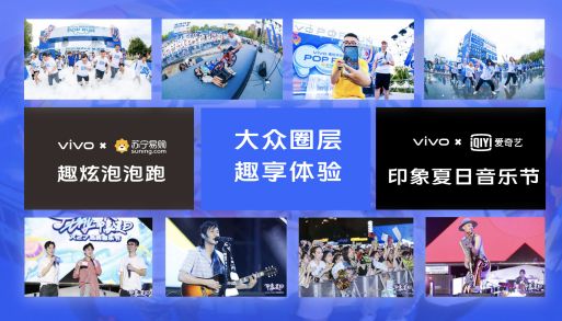 在这三个圈层,vivo针对性的进行资源覆盖,例如专门为精英阶层开设的”NEX100+“俱乐部,邀请了大量行业精英入驻,开展文化交流沙龙等;以乐趣共享为主的众多系列IP项目,像“趣炫泡泡跑”、“王者荣耀电竞盛典”,还有前段时间爆火的《乐队的夏天》衍生IP 岛屿音乐节,与大众圈层打成一片。
