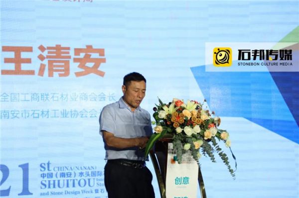 全国工商联石材业商会会长、南安市石材工业协会会长王清安随后的致辞中提到,疫情对于世界是一场严峻的考验,对石材行业却也是个机遇,石材人应当抱团发展,破局变革,为行业宏伟添砖加瓦。