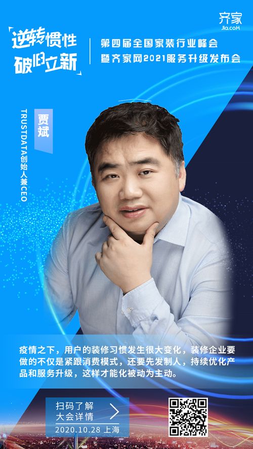 Trustdata创始人兼CEO贾斌确认出席齐家网第四届全国家装行业峰会