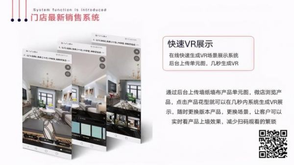 正是在这种情况下,皇家罗兰凭借超前的意识,将全景引入到版上,不仅仅把在每一张效果上,增加全景二维码.客户只需要扫描一下二维码,即刻就可以体验到贴上墙布的全景效果,操作简单,效果直观.一经推出,就火爆整个行业!直接导致整个行业里,版本上不带全景二维码的,根本就没有人卖!