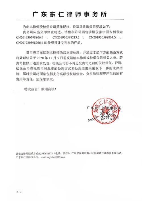 值得一提的是,此次维权是松堡王国针对专利侵权问题的首次维权。