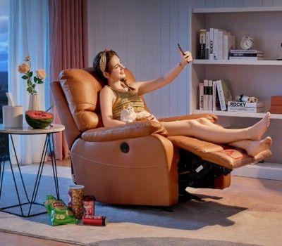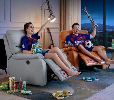 以此次在双十一预售中热销的网红单椅1025为例。该产品外观设计时尚高雅,产品外部采用巴西进口头层牛皮,质感细腻彰显高雅品位。配色有雾霾蓝、象牙白、赤霞橙三色可选,男女老少皆可选择适合自己的产品,可时尚百搭各种家居环境。产品采用七区承托科学设计,能够贴合身体每一个部位,30°前后安全摇动,带来完美舒适体验。还可以在110°到160°打开,满足上网、阅读、看电视、听音乐、休憩多种场景,一键随心调节,让用户尽享舒适美好生活。