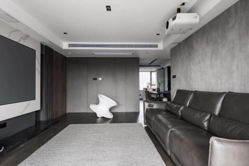 本次案例的主人遵循极简主义,为生活“减法”。家居风格运用大量的灰色调铺陈,营造出静谧安定的日常氛围,开放的格局规划,历练、干净、简约的材质元素,谱写极简、舒适典范。