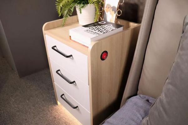 其中,康小金适老智能安全床头柜S1内嵌一键紧急呼救系统的适老床头柜,搭配智能网关,除了线下报警呼救,还能直接给紧急联系人拨打电话呼救,让居家生活多一重保障,少一点意外。在柜体部分,考虑到使用者可能出现身体不适的状况,将柜体高度加高至70CM,辅以4.2cm高的三面围挡,让使用者起床、行动有处借力,更加轻松;床头柜底部添加智能感应夜灯,柔和的光线不刺眼、不影响同寝人,让起夜更安心;而柜体材质采用了更安全的无醛添加“纯净板”,环保更健康。除此之外,圆弧形防磕碰边角设计、内嵌防泼溅插座等多项贴心设计,每一处细节都照顾到位。