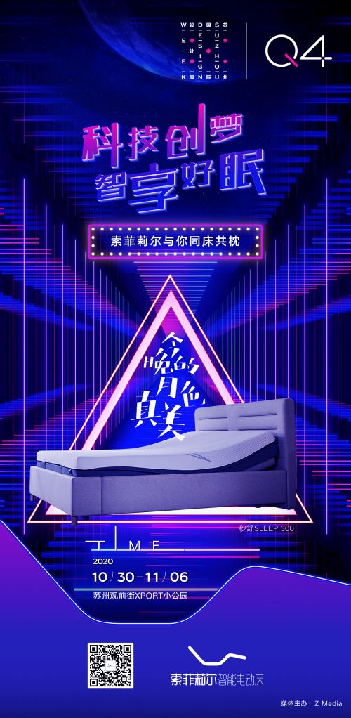 作为苏州国际设计周“Q4设计消费季”家居版块首个启动的亮点活动,10月30日至11月6日,作为全球智能电动床及智能床核心专利发明者,麒盛科技旗下的智能电动床品牌索菲莉尔,将携睡眠黑科技胶囊舱落位苏州观前街小公园,为大家带来多重睡眠升舱体验,邀请大家“科技创梦 智享好眠”。