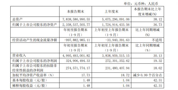 10月26日,三棵树(603737.SH)发布2020年三季度报告。搜狐焦点家居获悉,主要得益于工程、防水和建筑装饰等业务增长,三棵树实现营业收入49.95亿元,较上年同期增长30.13%;归属于上市公司股东的净利润3.25亿元,同比增长19.32%;基本每股收益1.48元,同比增长42.31%。